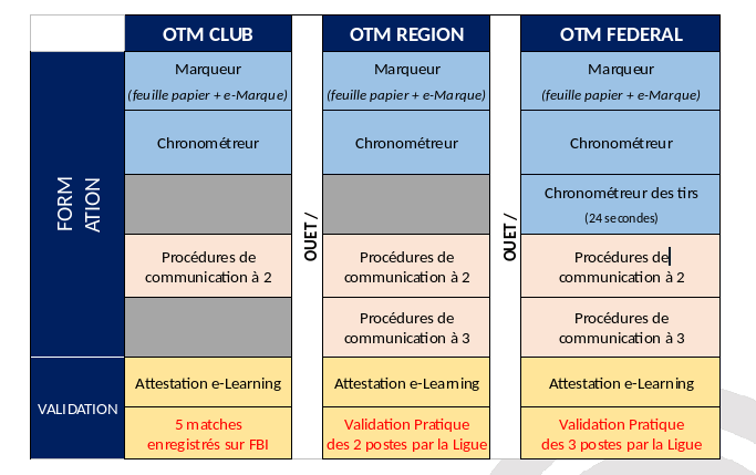 Afin d’assurer une homogénéité et de la qualité dans le travail des OTM sur le territoire à tous les niveaux de pratique, la FFBB a créé un programme de formation applicable dans chaque Comité Départemental et Ligue Régionale.