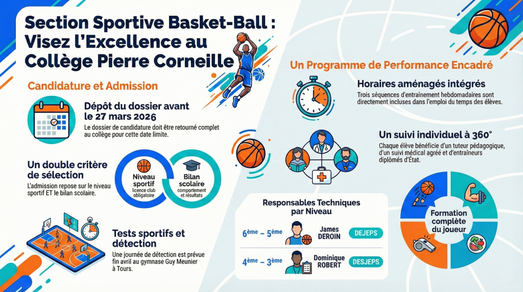 Les dossiers d’inscriptions pour la classe sportive B (4ème-3ème) et C (6ème-5ème) Corneille sont à retirer au collège ou téléchargeables sur le site de l’établissement.